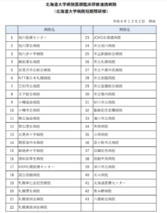 令和7年度北海道大学病院短期間(逆たすきがけ)研修上半期(5月~9月)の受け入れについて、北海道大学臨床研修センターから案内が開始となりました。