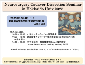 脳神経外科専攻医の皆さんはもちろん、初期臨床研修医の方、医学生の方、奮ってご参加ください。